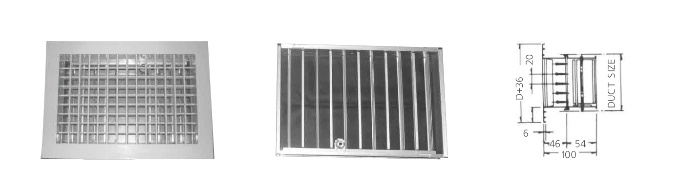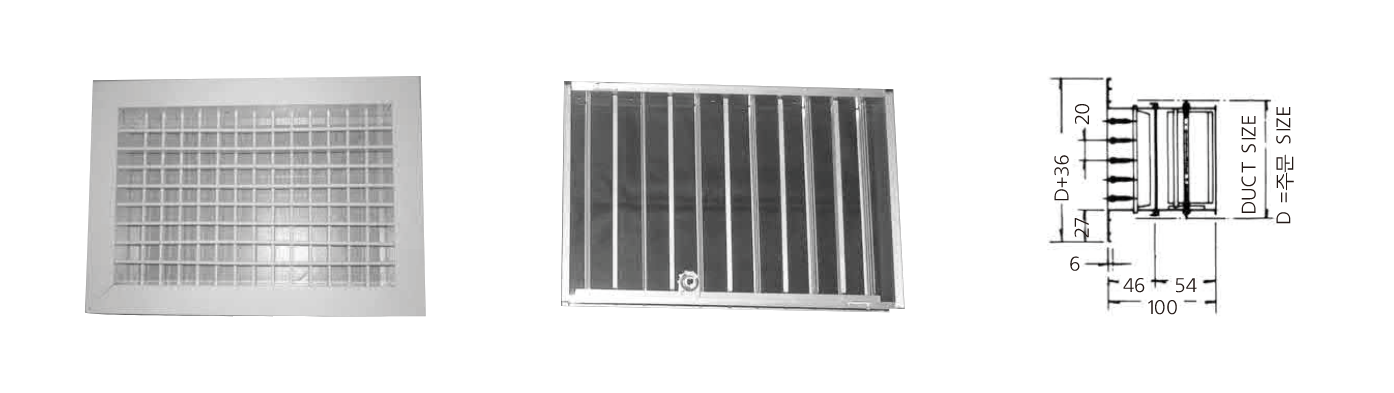 Grille의 역할을 하면서, 동시에 뒷부분에 설치된 Damper를 이용하여 공기량 조절까지도 할 수 있는 기구이다.